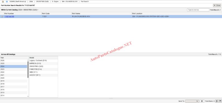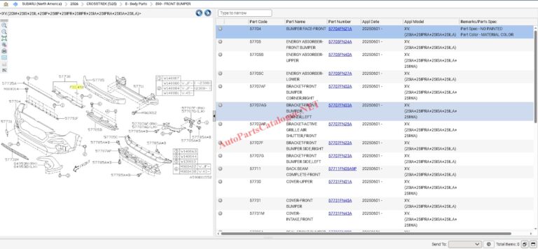 - Parts Catalog: Complete parts listings with OEM numbers, accessories, genuine Subaru parts, and part supersessions.